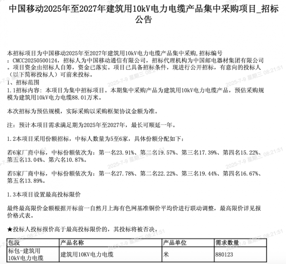 C114新闻7月9日新闻(99)中国移动收购网络和移动优惠于2025年至2027年以10 kV的建筑功率推出...